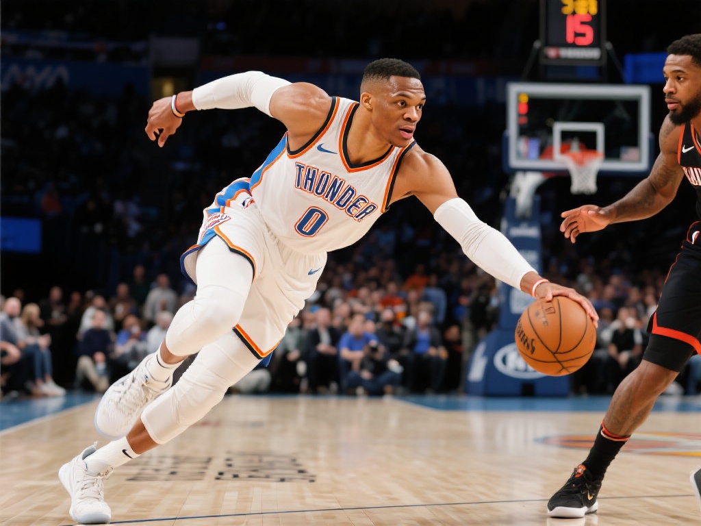 威少手感火热 外线干拔三分应声入网 篮球场上的每一次投篮都是成千上万次汗水与技巧的完美结合,当威少找到他那精准的手感,场上便成为他的舞台。拉塞尔·威斯布鲁克,俗称"威少",以其独